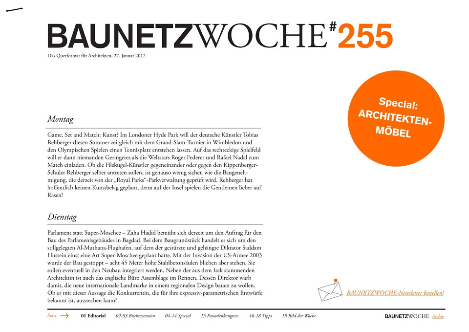 - Außerdem: Parlament statt Super-Moschee – Zaha Hadid will den Sitz der Volksvertretung in Bagdad bauen.